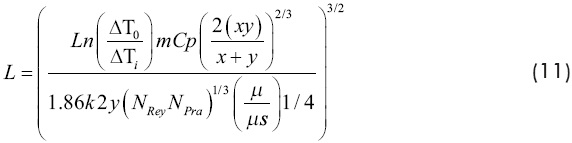 Otra característica de esta geometría es la flexibilidad que se tiene al variar sus dimensiones conservando la misma área transversal. El beneficio de disminuir la dimensión x, es obtener una menor distancia entre la pared del cocedor y el centro del material. Esto permite que el tiempo de cocimiento y la longitud sean menores. La desventaja de reducir la dimensión x es el incremento de la velocidad de corte por lo que se buscan dimensiones que cumplan con longitud pequeña para tiempos de cocimiento rápidos pero con bajo cizallamiento.