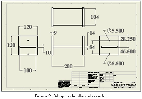 A continuación en la Figura 8 se muestra la vista isométrica del cocedor y en la Figura 9 el dibujo a detalle con dimensiones en milímetros.