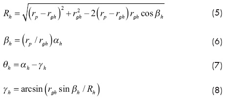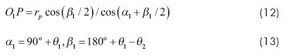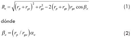 Es más cómodo describir las curvas epicicloide e hipocicloide en coordenadas polares R y θ, Litvin, Fuentes (2004). En la Fig. 1 se puede ver que la longitud del radio vector del punto C en la epicicloide se determina por el teorema de cosenos