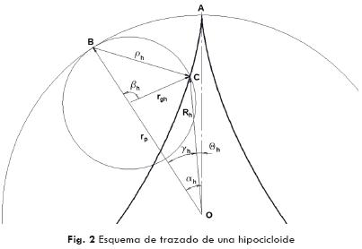 Ecuaciones similares se puede recibir para la descripción de una curva hipocicloidal (Fig. 2):
