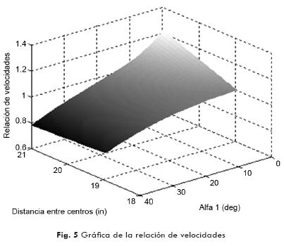 La solución numérica de las ecuaciones de cierre de circuito, que describen este mecanismo, da como resultado que la variación de la relación de velocidades no excede 20% del valor nominal, cuando la distancia entre ejes aumenta 10%.