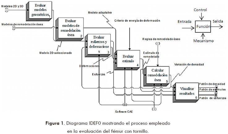 Para determinar y analizar los patrones de distribución de densidad que permitan estimar el daño generado al hueso por la incorporación del tornillo, se propone la metodología mostrada en el diagrama IDEF0 de la figura 1.