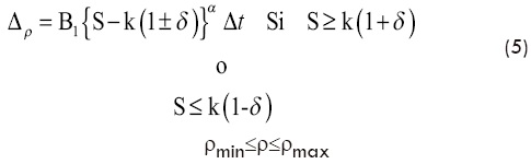 Por otra parte, si en un cierto valor S excede o está por debajo del estímulo de referencia k, no se tiene proceso de remodelado, por lo que existe una zona específica representada por δ (determinada experimentalmente) en la que el hueso se mantiene estable, la zona δ es un porcentaje alrededor del valor k a partir del cual se inicia la formación o reabsorción ósea, de modo que el remodelado óseo no se iniciará sí existe una pequeña diferencia entre la densidad de energía de deformación y el estímulo de referencia k, la ecuación (3) se puede representar mediante las reglas de remodelado de la siguiente manera.