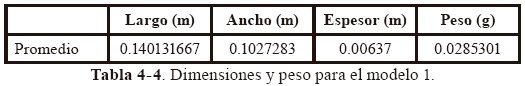 El promedio de las dimensiones tomadas para este modelo se muestra en la Tabla 4-6