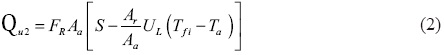 De esta última ecuación se obtiene el término UL que representa las pérdidas de calor en el concetrador debidas a las condiciones de trabajo, así como las características y propiedades ópticas de los materiales de construcción y de la geometría del mismo (Duffie et al., 2006).