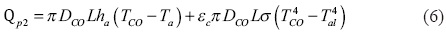 Qp2 Flujo de calor perdido del tubo trasparente al ambiente (W)