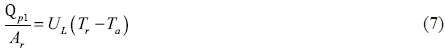 Finalmente, la ecuación (7) representa el calor perdido en el tubo absorbedor en relación al área del concetrador.