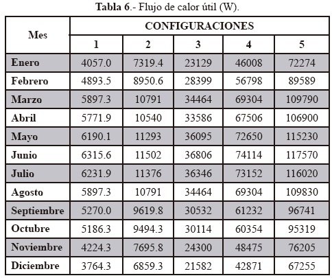 Los resultados que proporciona el software SOLEEC y que se resumen en las tablas anteriores permiten definir el tipo de aplicación que podría tener cada configuración, basados en el flujo de calor útil, la eficiencia, las pérdias de calor y el flujo másico requerido.