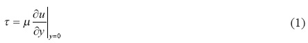 Como se sabe, la fricción de arrastre se produce debido a la interacción del flujo de un fluido con la superficie sólida del conducto por donde fluye. El fluido viscoso en contacto con la superficie sólida produce una zona denominada capa límite dinámica donde se generan importantes gradientes radiales de velocidad debido a la viscosidad del fluido y es precisamente en esta zona donde ocurre el fenómeno de fricción de arrastre que está asociado con el esfuerzo cortante sobre la superficie y con la viscosidad del fluido. Para flujo laminar el esfuerzo cortante se expresa de la siguiente manera.