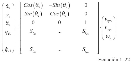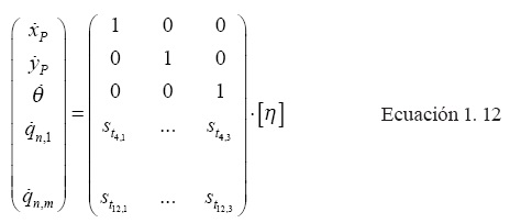 Donde Stn son vectores columna y η=[vxP vyp ωp]T es el vector de entradas. Por lo tanto: