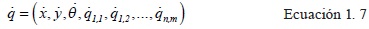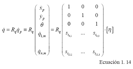 Donde, ATp (q)∈R(M·N)x(3+M·N) es la matriz asociada a la cinemática en el sistema inercial, q∈R3+M·N es el vector de las coordenadas de configuración y