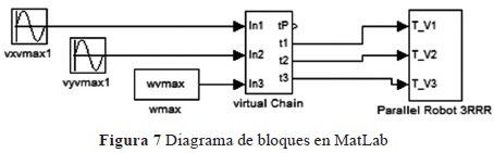 En la Fig. 7 se muestra cada bloque que contiene la información de la cadena virtual y del manipulador 3RRR-(RRR)v.