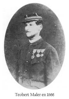 Uno de los bosquejos biográficos más a menos y confiables acerca de Maler es producto de la pluma de Echánove.12 Entre otros interesantes datos, anota que nació en el Palazzo Rospiglioli, en Roma, el 12 de enero de 1842, de padres alemanes. Se sabe que a la edad de veinte años, en 1862, con estudios de arquitectura e ingeniería, pasó a Viena, donde obtuvo la nacionalidad austriaca. Allí trabajó como ayudante de arquitecto y a la postre "el joven Teobert se incorpora de pronto como cadete de la Primera Compañía de Pioneros del Cuerpo del Ejército Imperial Mexicano, que estaba formándose en Lubliana bajo las órdenes del general Conde de Thun-Hohemstein".13 En noviembre de 1864 se embarca en Trieste en el buque La Boliviana con destino a México para servir como voluntario al emperador Maximiliano de Habsburgo, quien había aceptado el trono del Imperio Mexicano. Llegó a México, después de cuarenta y dos días de trayectoria, el 30 de diciembre de 1864. Su carrera militar duró sólo dos años y medio, llegando a su fin con el fusilamiento de Maximiliano el 19 de julio del 1867.14