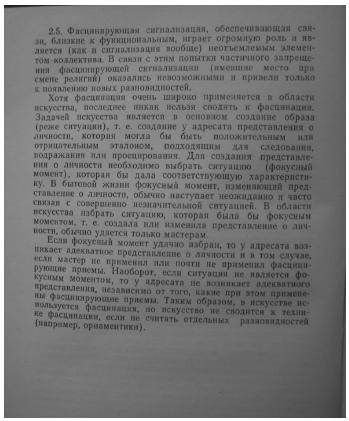 2.5. La señalización fascinante, como aseguradora de relaciones casi funcionales, tiene un papel importante y representa (como la señalización en general) un elemento inseparable del colectivo. Por eso los intentos de prohibir parcialmente la señalización fascinante (surgidos en momentos de cambios de religión) han resultado imposibles y únicamente han provocado la aparición de nuevas formas de esta señalización.