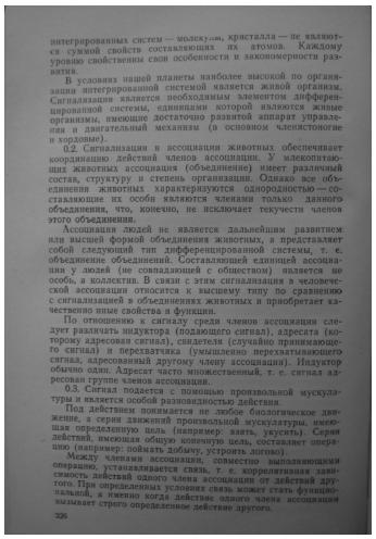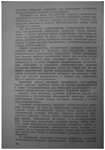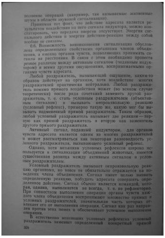 2.1. La señal (la serie de señales), así como los irritantes condicionales, funciona de doble manera. En calidad de señal es transmisora de información sobre una situación (una orden). Al mismo tiempo es un determinado hecho físico que afecta los sentidos, un irritante directo (y a veces condicional, con excepción de la información). Esta dualidad de la señal, así como la posibilidad de modificarla en un diapasón suficientemente amplio sin cambiar la información, dio el sustento para utilizar sus propiedades físicas (como irritante para elevar la probabilidad del cumplimiento de la orden).