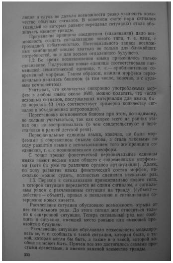 1.3. El tránsito hacia la señalización de tipo totalmente nuevo, en la cual la situación se transmite no a través de una señal, sino a través de una serie de señales con desmembramiento de la situación en una tríada (sujeto-acción-objeto), condujo a la aparición de características absolutamente nuevas en la señalización.