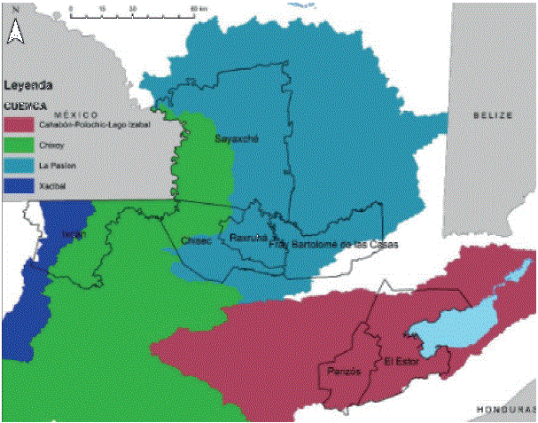 En los siete municipios estudiados se encuentran localizadas cuatro cuencas principales: tres ubicadas en la vertiente del Golfo de México, siendo estas las cuencas de los ríos Chixoy, La Pasión y Xaclbal; y una cuarta, la cuenca de los ríos Cahabón y Polochic en la vertiente del Mar Caribe. Dentro de estas cuencas se ubican 22 subcuencas y 148 microcuencas, que son las unidades hidrológicas de menor escala.