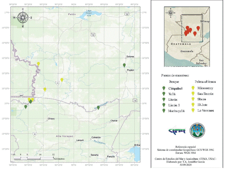 ¿Cómo impacta el cambio de uso del suelo en la vida de las comunidades y de las mujeres, en particular? ¿Es atribuible a este monocultivo el deterioro de las fuentes de agua en la zona? El presente artículo busca correlacionar los resultados de tres estudios realizados entre 2019 y 2022 en el marco del proyecto Hacia una gobernanza territorial en áreas de expansión de la industria palmera, financiado por la Unión Europea y ejecutado por el consorcio integrado por ActionAid Guatemala, el Instituto de Investigación en Ciencias Naturales y Tecnología (IARNA) de la Universidad Rafael Landívar3 y la Coordinación de ONG y Cooperativas (Congcoop). Los estudios se enfocaron en la situación de las mujeres en el contexto de la industria palmera, a partir de las estadísticas nacionales relativas al acceso al agua y entrevistas cualitativas realizadas con mujeres en las áreas impactadas por el monocultivo (ActionAid, 2020; Sánchez, 2019); el análisis técnico de la calidad del agua utilizando el índice simplificado de calidad de agua (ISCA) y el índice biológico de calidad de agua con macroinvertebrados4 (Iarna, 2022b) y el análisis de la dinámica de expansión del cultivo de la palma africana y el cambio del uso del suelo para el período 2010-2020 (Iarna, 2022a).