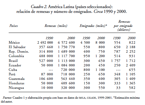 Panorama regional de las remesas durante los años noventa y sus impactos macrosociales en América Latina