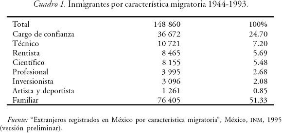 Extranjeros en México por característica migratoria, 1944-1993, México, Instituto Nacional de Migración, 1995" versión preliminar. [ Links ]