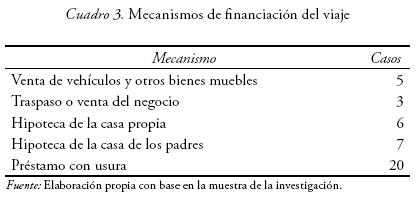 Esta modalidad supone un encarecimiento del billete, a lo que hay que añadir una bolsa de viaje que el gobierno español establece en 1 500 euros. Pocos de los inmigrantes ecuatorianos pueden recurrir al préstamo bancario, por lo que las vías para sufragar el viaje descansan, en gran medida, sobre las redes de las/os migrantes: algunas familias venden el patrimonio acumulado durante años de duro trabajo, como vehículos y otros bienes muebles; otras traspasan o venden sus negocios, o hipotecan sus casas o las de sus padres.
