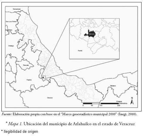 Atlahuilco es una comunidad ubicada en el corazón de la zona fría de la sierra de Zongolica. El paisaje presenta bosques de pino y pino-encino, así como bosques mesófilos de montaña secundarios, asociados con sistemas agropastoriles y agrícolas en los fondos de los valles, con franjas de suelos acrisoles que son fácilmente lavados y de fertilidad reducida. La combinación de relieve, tipo de suelo, clima e intensidad en la explotación agrícola han propiciado procesos de erosión y arrastre de materiales (Ortiz, 1991). Casi la totalidad de la población es hablante de lengua náhuatl, 64.45 por ciento es bilingüe -28.5 corresponde a hombres y 71.5 a mujeres-, y 32.7 no habla español (INEGI, 2000a).