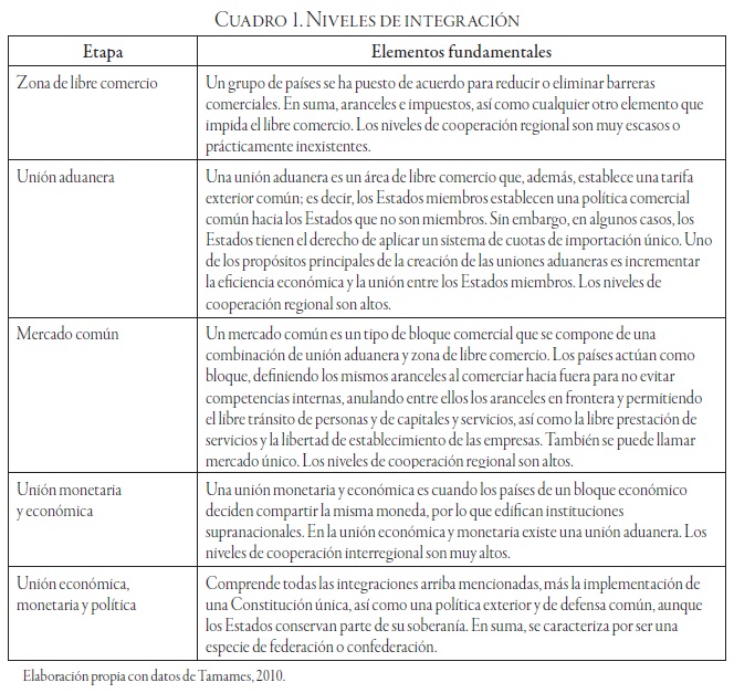 En el cuadro 1 se aprecian con más detalle los niveles de integración anteriormente mencionados.