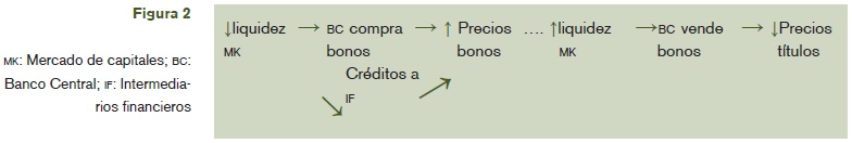 La intervención del banco central o del departamento del tesoro en el mercado de capitales es más complicada y no es directa. Primero, el banco central sólo puede proveer indirectamente liquidez al mercado de títulos vía créditos a los corredores (brokers) o a través de facilidades de sobregiro (overdraft) y mediante dinero de muy corto plazo (call money). Segundo, los agentes del mercado de títulos actúan en "manada" (Keynes, 1936, capitulo XII) volviendo más extremo el movimiento de precios, especialmente cuando el mercado financiero está dominado por inversionistas institucionales. Tercero, si los bancos centrales proveen liquidez al mercado de capitales mediante la compra de títulos en dicho mercado, pueden encontrarse en una situación de control de importantes sectores de la economía (por ejemplo, durante la crisis del Sudeste asiático quedaron bajo control del banco central de Hong Kong importantes sectores de la economía) o pueden avalar movimientos especulativos que generalmente preceden a las crisis financieras.