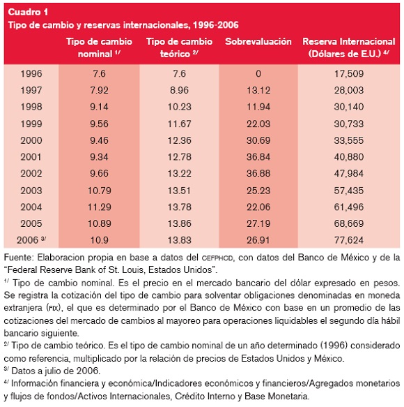 La política de estabilidad cambiaria ha obligado a construir reservas internacionales masivas (Cuadro 1) para asegurar la convertibilidad de la moneda al tipo de cambio establecido, y así "fortificar" a la moneda contra embates especulativos que puedan provenir ya sea de vulnerabilidades externas o bien de problemas internos.