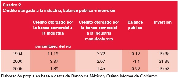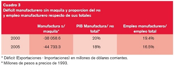 Sustentar la reducción de la inflación en la apreciación cambiaria, así como en la política monetaria restrictiva y en la disciplina fiscal, trae por consecuencia la descapitalización de la esfera productiva y la desindustrialización (Cuadro 3). "La aguda tendencia declinante de la inversión pública en América Latina desde la crisis de deuda parece estar asociada con la tendencia de desindustrialización (UNCTAD, 2003:76). Ello afecta el crecimiento de la economía, la disponibilidad crediticia hacia tal sector, así como la generación de empleo, además de acentuar las presiones sobre el sector externo, así como los problemas del subdesarrollo.