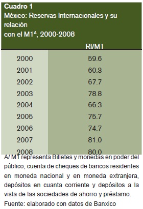 La política macroeconómica de 'estabilidad', le quita al Estado el control de la moneda, al exigirle que el banco central trabaje con autonomía y circunscribir a la política monetaria a preservar el poder de compra de la moneda. El banco central prefiere asumir el costo de la política monetaria restrictiva para frenar la demanda y evitar presiones inflacionarias y sobre el tipo de cambio, para que el capital no se vea afectado y fluya al país. Al frenar la actividad económica, contribuye a reducir el crecimiento de la oferta monetaria y atraer capitales, dada una mayor tasa de interés, lo cual aumenta las reservas internacionales. Con ello, estrecha la relación que guarda la oferta monetaria con las reservas internacionales (véase cuadro 1), para así garantizar la estabilidad cambiaria y la convertibilidad de la moneda al tipo de cambio predominante.