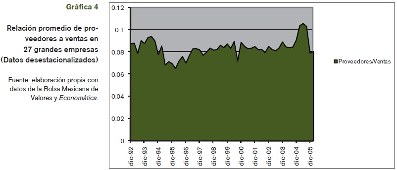 Así pues, para estimar el impacto que tendría en las empresas micro, pequeñas y medianas un sistema de crédito no monetario como el propuesto, tomamos como un indicador conservador, la relación promedio de proveedores a ventas que observamos en una muestra de 27 grandes empresas en el período 1992-2005.