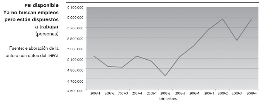 Las estadísticas de la PEI disponible, que engloban a los llamados "ni-ni" ha tenido también un crecimiento que se sitúa en alrededor de un millón de personas durante el lapso comprendido entre el tercer trimestre de 2008 y finales de 2009.