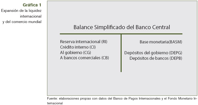 Una parte de la oferta de base monetaria, la correspondiente a la monetización de la reserva internacional, no depende directamente de la voluntad del instituto emisor, pues está determinada por el saldo de la balanza de pagos. Consecuentemente, el banco central se debe adaptar para ofrecer la parte residual de la base monetaria demandada, y lo hace a través de su crédito interno neto, que es igual al crédito que concede al gobierno y a la banca comercial, deducidos los depósitos que éstos tienen en el instituto emisor. Estos ajustes se pueden visualizar en el balance simplificado de un banco central que aparece en la Figura 1, donde los activos son la reserva internacional (RI) y el crédito interno que la autoridad monetaria concede a los bancos y al gobierno (CI= CIB + CIG), y los pasivos son la base monetaria (BASM), los depósitos del gobierno en forma de valores para regulación monetaria (DEPG), y los depósitos extraordinarios de la banca comercial (DEPB).