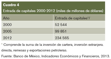 Marginar al sector productivo atenta contra la capacidad productiva, pues aumenta las presiones sobre el déficit de comercio exterior y genera problemas de insolvencia, lo que mantiene el freno de la actividad económica, así como el diferencial de crecimiento planteado entre los sectores financiero y productivo, y hace a la economía más dependiente de las variables externas, es decir, de las exportaciones, las remesas, la entrada de capitales, y del comportamiento de los mercados financieros internacionales (véase cuadros 3 y 4).