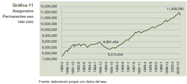 A diferencia la crisis de 1982 en que la compresión de los salarios reales evitó un desplome de igual magnitud en el empleo, en la de 1995, ocurrieron ambos fenómenos. El salario medio, que empezaba a recuperarse, perdió lo poco que había ganado y la pérdida de puestos de trabajo abarcó a todos los sectores. Aunque el nivel de ocupación tuvo una rápida recuperación, no sucedió lo mismo con el salario medio, cuyo nivel deprimido habría de convertirse, a partir de ese momento en un elemento clave de la competitividad, para el nuevo modelo exportador centrado en la maquila y el ensamble.