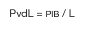 En una economía con capital constante, el nivel de producción depende de la mano de obra disponible y, por tanto, el producto por hombre empleado se define como el valor del PIB entre el número de personas empleadas en la economía. En este caso, la productividad de la mano de obra (PvdL) se expresa como: