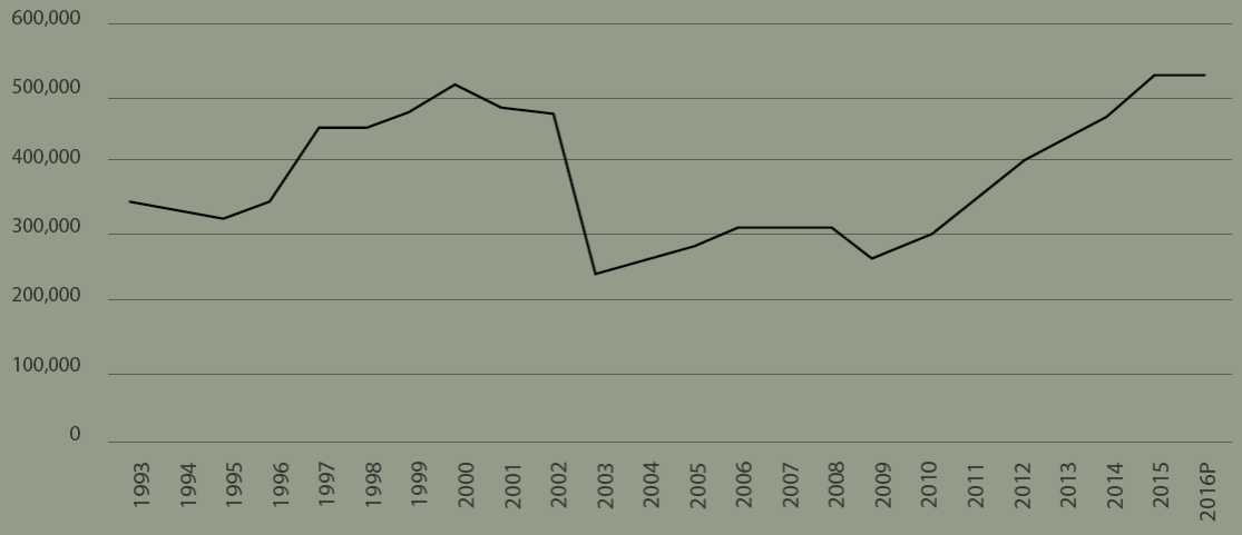 | 2016 | 1,603,672 | 716,896 | 886,776 | 749,193 | 137,583 |