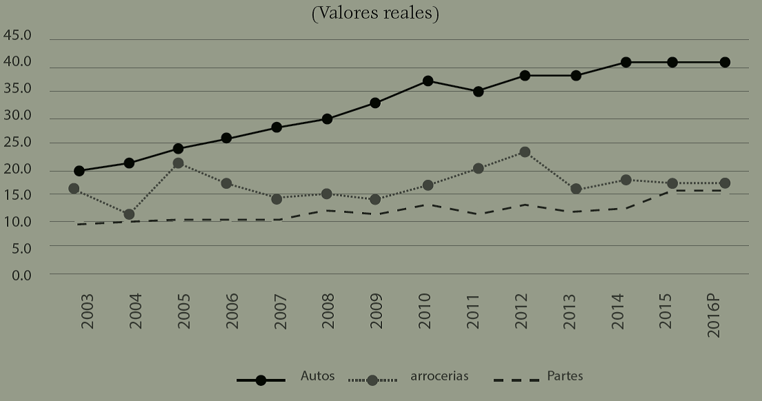 La composición de esta fuerza laboral en los subsectores que componen la IA parece más relevante que su total ya que apunta al grado de especialización al que se ha llevado a esta industria. En 2003 del total de trabajadores en la IA 20% se ocupaban en la fabricación de autos mientras 77.5% lo hacían en el sector de autopartes. Este bajo nivel de participación del empleo en la producción de autos se ha reducido hasta llegar al promedio anual de 17.6% entre 2003-2016, en tanto que 79.9% de los puestos de trabajo corresponden a la producción de autopartes y 2.5% se ubica en la fabricación de carrocerías y remolques. Esta distribución apunta a la alta especialización en autopartes que tiene la IA pero igualmente apunta al mayor grado de automatización que tiene el ensamblado de vehículos. Este hecho hace evidente el mayor énfasis que las ETL, particularmente de Estados Unidos, pusieron en aprovechar las ventajas que ofrecía México para hacer más competitivo al sector luego de la crisis que experimentaba y que se agravó como consecuencia de la GR.