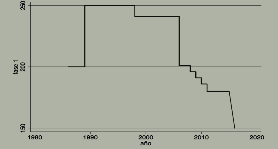 Segunda, tampoco especifica los criterios para definir cuando los parámetros señalados de la calidad el aire (IMECA) son nocivos para la salud. Este punto tiene particular importancias dado que a lo largo de la vida del este Programa se ha modificado el valor límite para declarar las fases I y II de la “contingencia”. De mayo de 1986 a julio de 2016, para el caso del ozono, los valores índice de la calidad del aire se modificaron en 8 ocasiones pasando de 200 puntos para la fase I a 150 puntos. Ni los periodos para reducir los índices, ni las reducciones, han sido regulares, tal como se aprecia en la Gráfica 1.