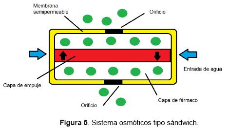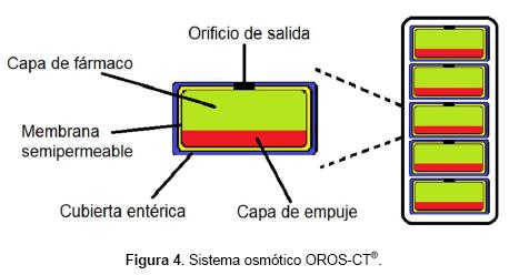 Los sistemas osmóticos poseen un diseño adecuado para la liberación controlada de fármacos, los cuales se basan en el principio de la presión osmótica. Estos sistemas no se ven influenciados por los diferentes factores fisiológicos existentes, así también presentan una liberación de fármaco predecible a partir de las propiedades conocidas del fármaco y de la forma de dosificación, modulando las propiedades del mismo sistema.1,3
