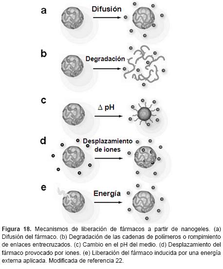 El diseño de nanogeles poliméricos con nuevas propiedades representa un campo de constante interés para la industria farmacéutica y biomédica, debido a su estructura tridimensional, propiedades mecánicas, alto contenido de agua y biocompatibilidad, representan una excelente opción en: ingeniería de tejidos, agentes de diagnóstico, inmovilización celular, separación de biomoléculas o células, implantes biomédicos y como SAF.4-5 En esta revisión, se describen y se discuten los diferentes métodos de síntesis de nanogeles y su caracterización, así como la evolución reciente de éstos como nanovehículos de fármacos y otros agentes bioactivos con aplicaciones biológicas y biomédicas.