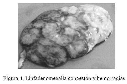 Las lesiones macroscópicas compatibles con las EACVP2 observadas en los órganos linfoides de los grupos monitoreado y sacrificado fueron similares a los informados por la literatura (Torres et al., 2006; Bastianello, 2004; Capuccio et al., 2006; Díaz et al., 2007). El órgano afectado con mayor frecuencia fue el linfonódulo y el menos afectado el bazo. No se observaron lesiones macroscópicas compatibles con las EACVP2 en tonsilas e íleon, lo cual, coincide con lo reportado por la literatura (Torres et al., 2006; Segalés y Domingo, 2002; Segalés, 2002). Sin embargo Drolet et al., (1999) mencionan que el SDNP se caracteriza por la formación de complejos inmunes, los cuales, viajan por la sangre y pueden depositarse en las paredes de los vasos sanguíneos generando una reacción inmunomediada, por lo que cualquier órgano puede presentar las lesiones compatibles con el SDNP.