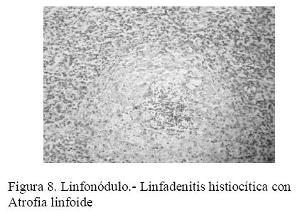 Microscópicamente, la atrofia linfoide y la infiltración histiocítica fueron las lesiones más frecuentes observadas en los órganos linfoides de los grupos monitoreado y sacrificado, éstas son las lesiones características del CVP2 (Segales, 2002). El órgano afectado con mayor frecuencia fue el linfonodo lo cual, coincide con Bastianello (2004). Otra lesión observada en los órganos linfoides fue la infiltración histiocítica con hiperplasia, esta lesión ha sido asociada a estimulaciones antigénicas de cualquier tipo. (Fry y McGavin, 2007). En las placas de Peyer del íleon además de la atrofia linfoide característica del CVP2, también se observó una alta frecuencia de hiperplasia linfoide, esta lesión sugiere una infección CVP2 y Lawsonia intracellularis; Zlotwski et al., (2008); mencionan que coinfecciones con CVP2 y Lawsonia itracellularis provoca que los cerdos desarrollan una enteritis severa caracterizadas por una infiltración histiocítica e hiperplasia.