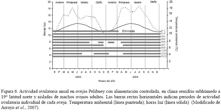 En los estudios anteriores se observan resultados variables. Es evidente la reducción en la actividad estral en la oveja Pelibuey entre enero y junio (época de anestro estacional en regiones septentrionales); sin embargo, en todos los reportes existe una proporción variable (17-96%) de ovejas que continúan ciclando durante esos meses, independientemente de las variaciones ambientales y de alimentación.