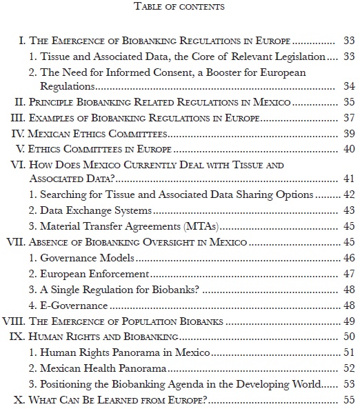 As for Mexico, principles such as institutional "independence of the oversight" "efficiency of control powers including sanctions"82 could be a good start to reform the situation of biobanks. The publication of biobanking guidelines is essential. Despite significant legal gaps, currently enforced bio-banking rules need to start becoming effective through practical mechanisms. Institutional coordination would be a good first step in resolving problems on a national level. Some have commented that "as genomic medicine develops in Mexico, the need for modern legislation related to its ethical and social implications will also increase."83