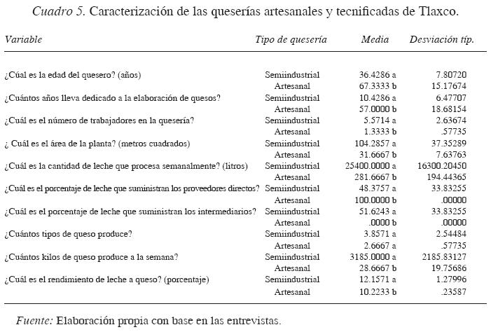 Como se ha indicado, en el municipio de Tlaxco se identifican dos cadenas bien diferenciadas para el queso tenate: la cadena artesanal y la cadena semiindustrial. A continuación se presentan algunas variables para comparar los dos tipos de queserías.