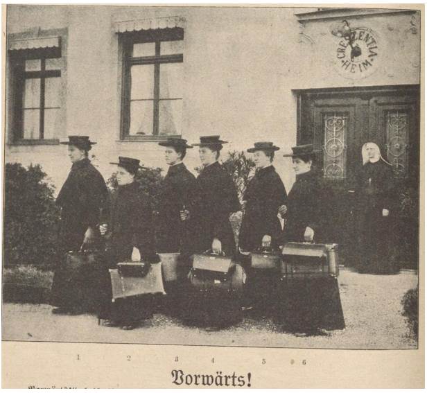 I am 37 years old. For 14 years, I have been a nurse [...] I was in Sofia, Bulgaria, also in Romania and Turkey from 1923 to 1927 [...] I wanted to enter a monastery [...] but unfortunately my father and brothers did not allow it [...] I am aging and the thought of completely surrendering to God and offering my strength and health to others does not leave me in peace. My spiritual guides tell me that I should not lose hope, since there are also late vocational priests, so why wouldn’t God take me as a nun in my more mature years for his service? [...] My current work is very unsatisfactory and boring, as I am taking care of a young lady who suffers from spinal cord disease and also taking care of the whole household (Franziska Schmid, 1932, AHDV).28