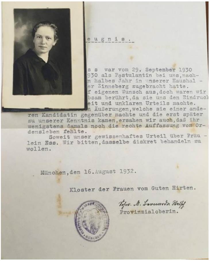 I intended to join the Sisters of Mary. I sent the required documents, but they were returned to me with the observation that they do not accept people who have been in another convent before. It hurts so much to hear that. If I had committed any offense, I could understand it (Maria Renninger, 1933, AHDV).27