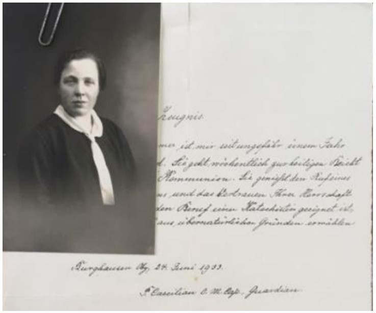 The modulation and negotiation of anxiety, however, did not always succeed. Such was the case of Klara Mergler,21 who despite applying in 1932 with recommendations that highlighted her “solid character”, that she is “hardworking and deeply religious”, “modest”, of “noble discretion”, that she “attends daily Mass in our church” (Father Johannes, 1932, AHDV), that her “reputation”, “behavior”, “moral and religious conduct were always excellent” (Father Feuerbach, 1932, AHDV), is not selected. Mergler will write letters from 1932 to 1934 requesting explanations and insisting on her admission. The priests involved in the process interpreted this as “extravagant” stubbornness, emphasizing “how little can be trusted in recommendations and references, even from confessors” (Letter from Father Eduard to ‘His Excellency’, 1933; Letter from Father Eduard to Guido Beck, 1934, AHDV). Somewhat more indulgent, Father Suitbertus explained: